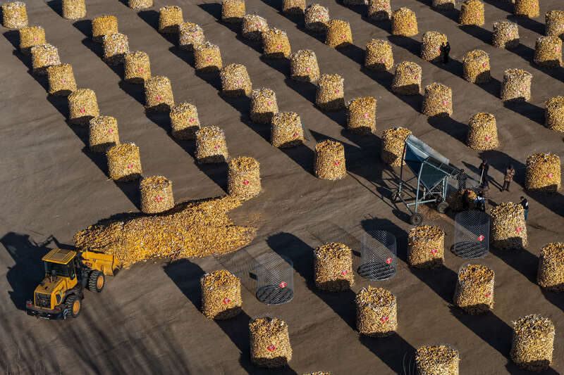 深秋的内蒙古兴安盟,农家院落里立起一个个“玉米楼”。11月13日,中青报·中青网记者来到兴安盟科尔沁右翼前旗大石寨镇东方红村,看到一座座钢丝网围成的苞米栈子,摆放在村民的庭前院中,里面金黄的玉米棒子堆得满满当当;行至科尔沁右翼前旗额尔格图镇兴牧嘎查,数十列圆筒形的“粮囤子”规整有序,构成一幅极具冲击力的丰收图景。